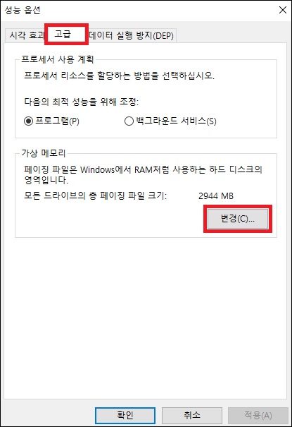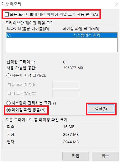 자 이제 가상메모리 설정이 끝났습니다.