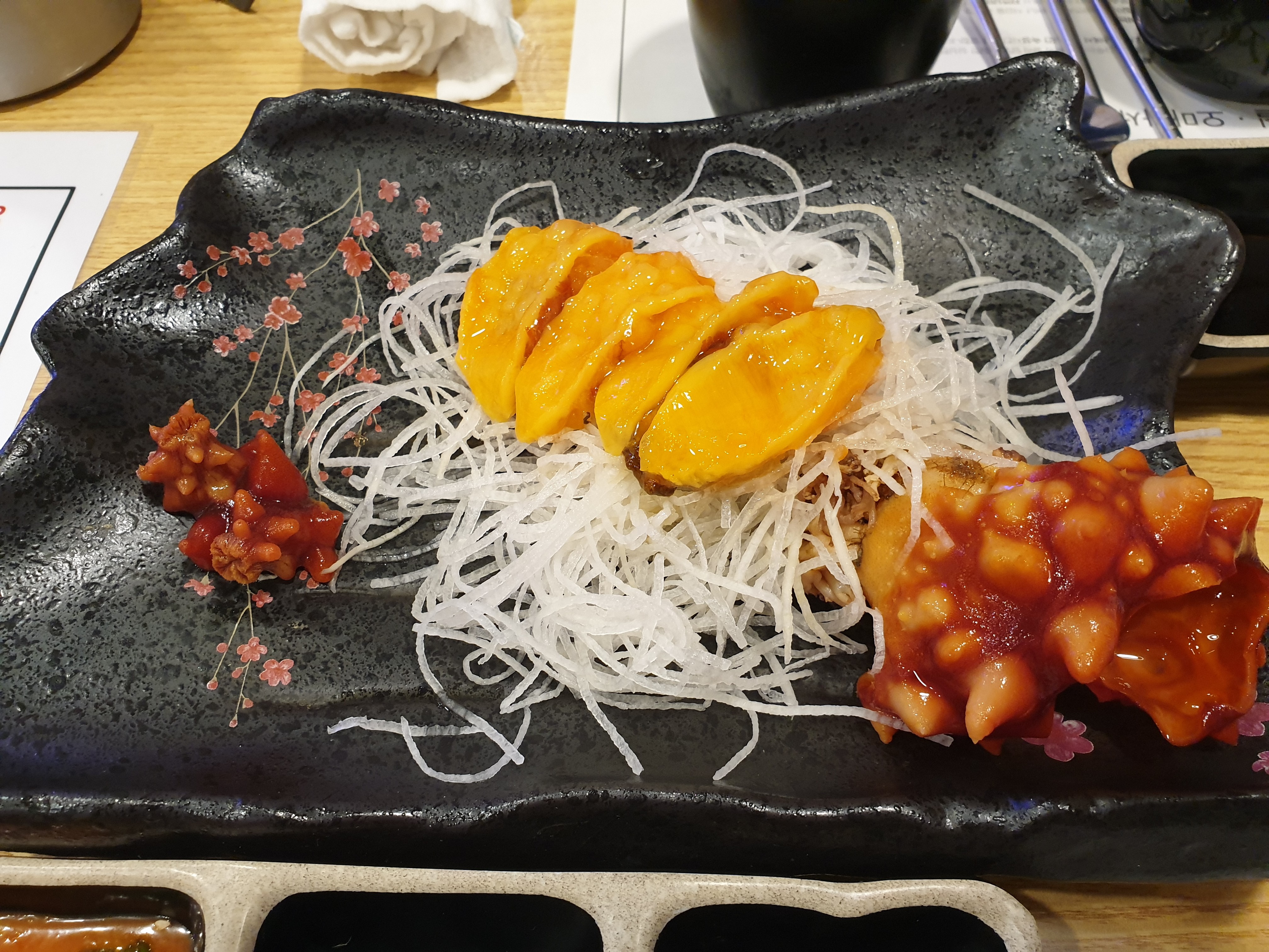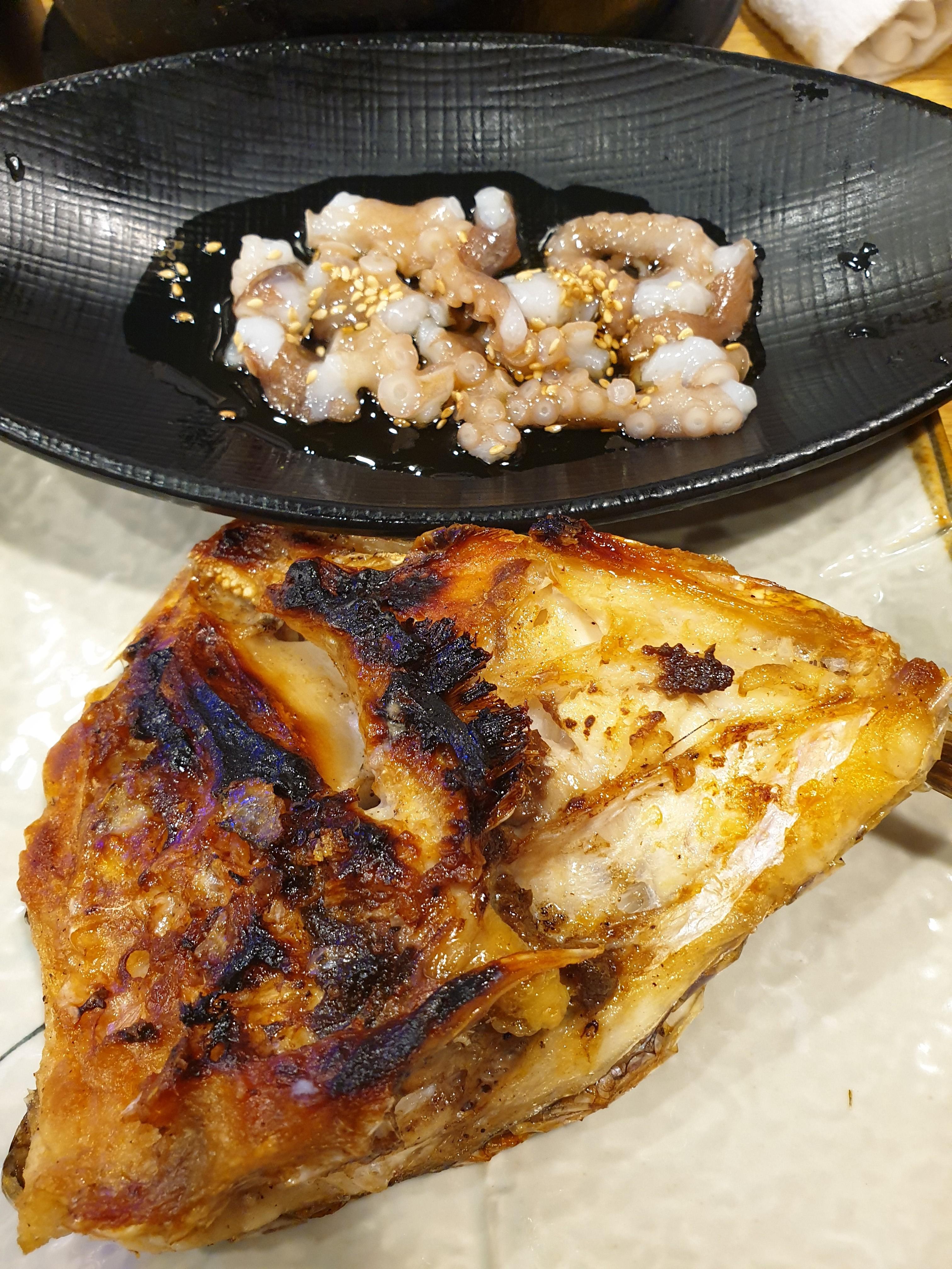 멍게 2번, 생선머리튀김 2번, 숙성회 3번
