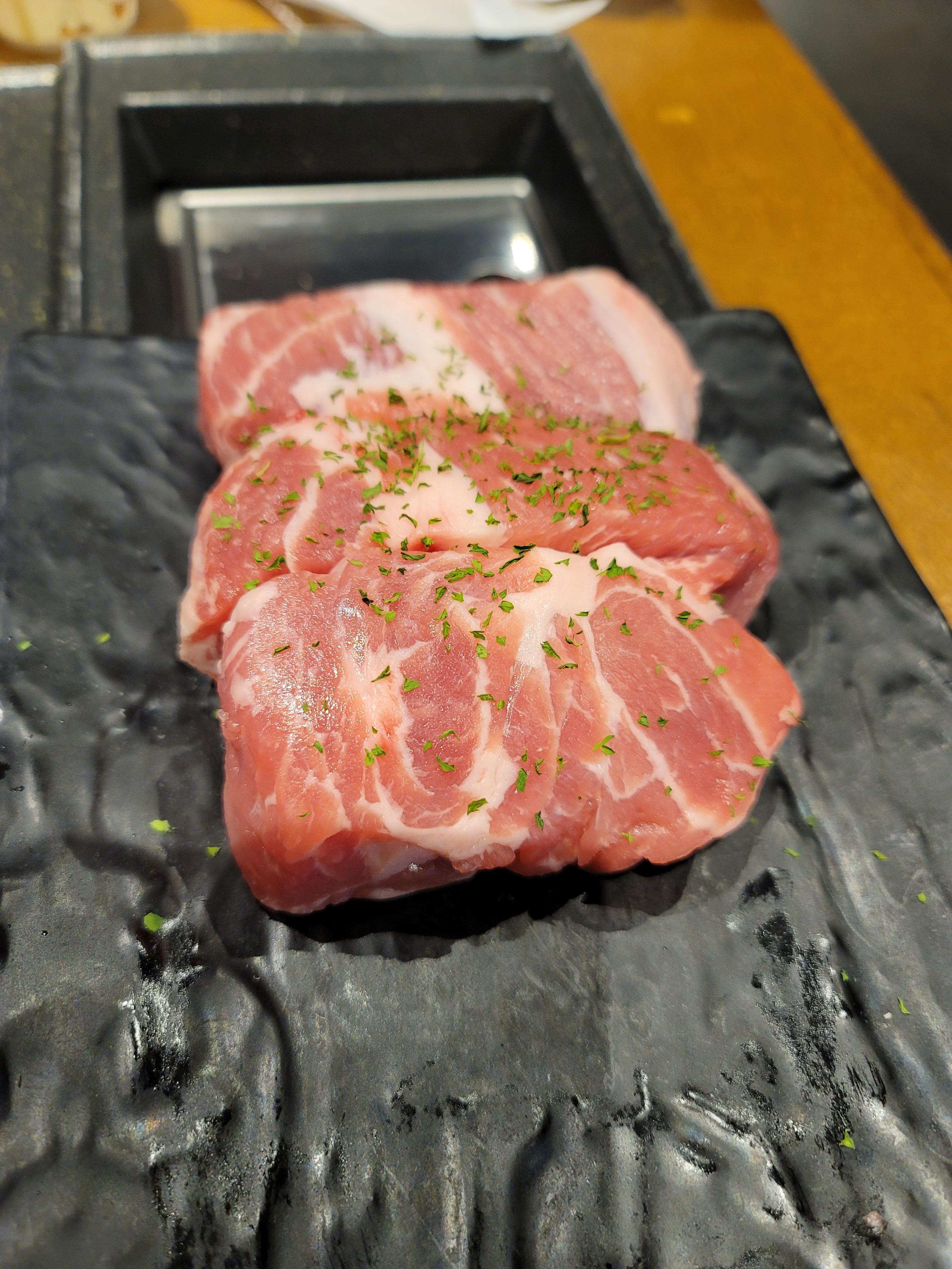 주문한 삼겹살 3인분과 목살 3인분이 나왔구요,