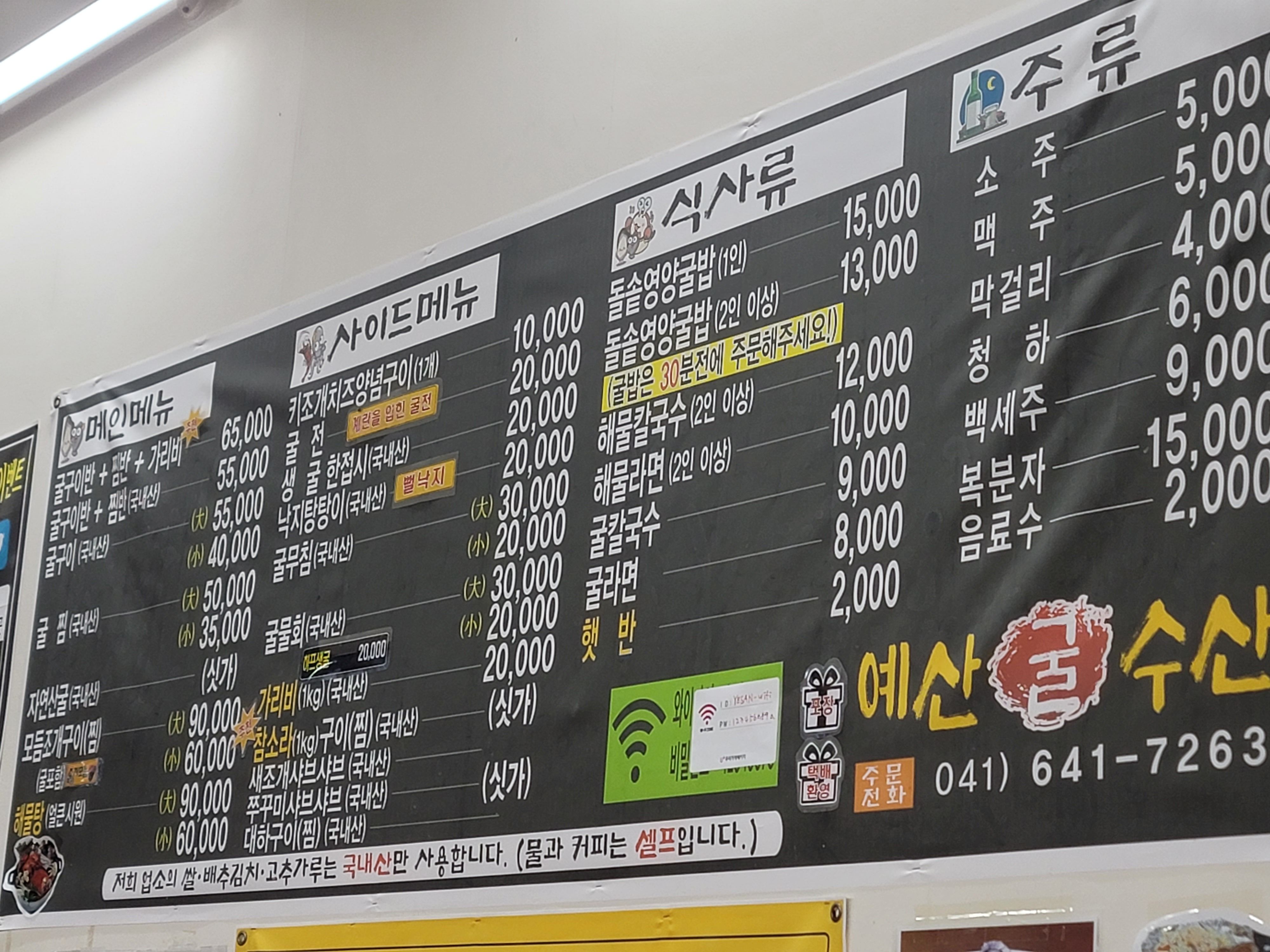 예산 굴 수산 한 번 방문해보시는 것도 좋을 거 같습니다.