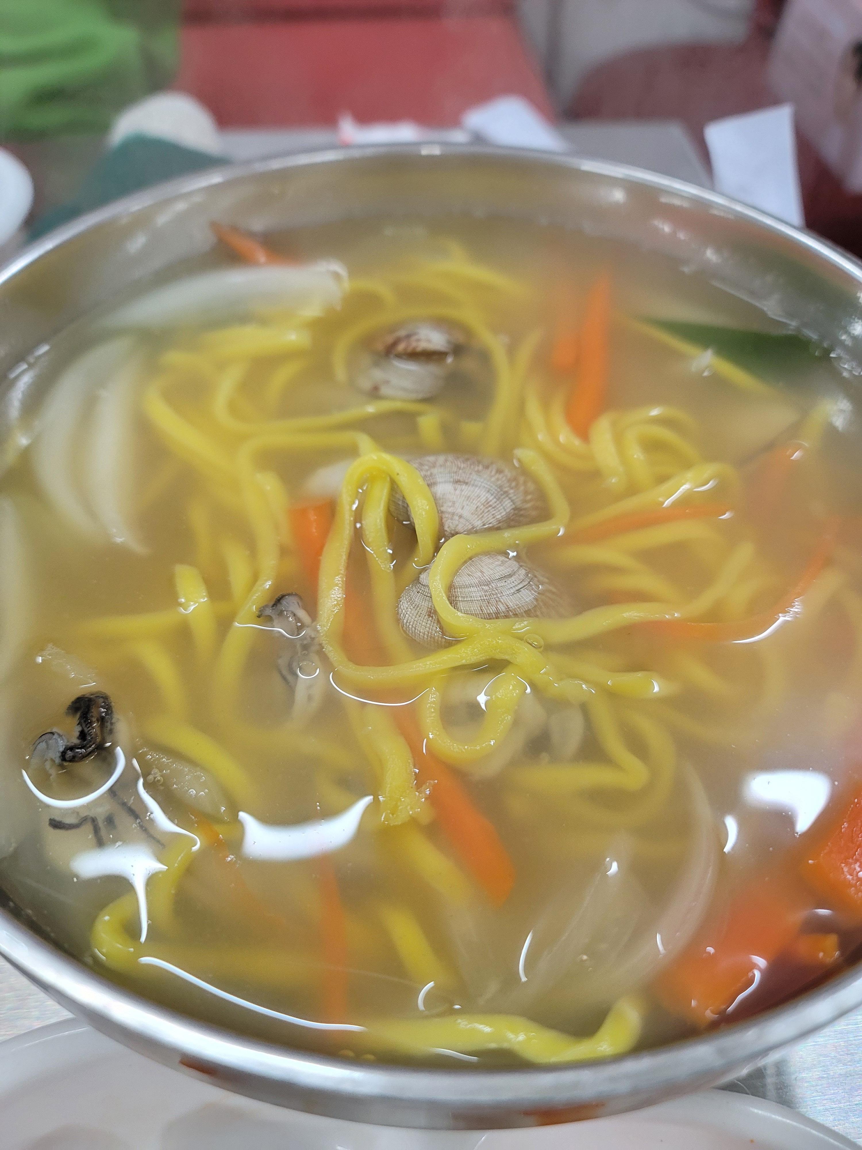 해물 칼국수를 하나 시켜서 열무김치와 배추김치랑 먹으면