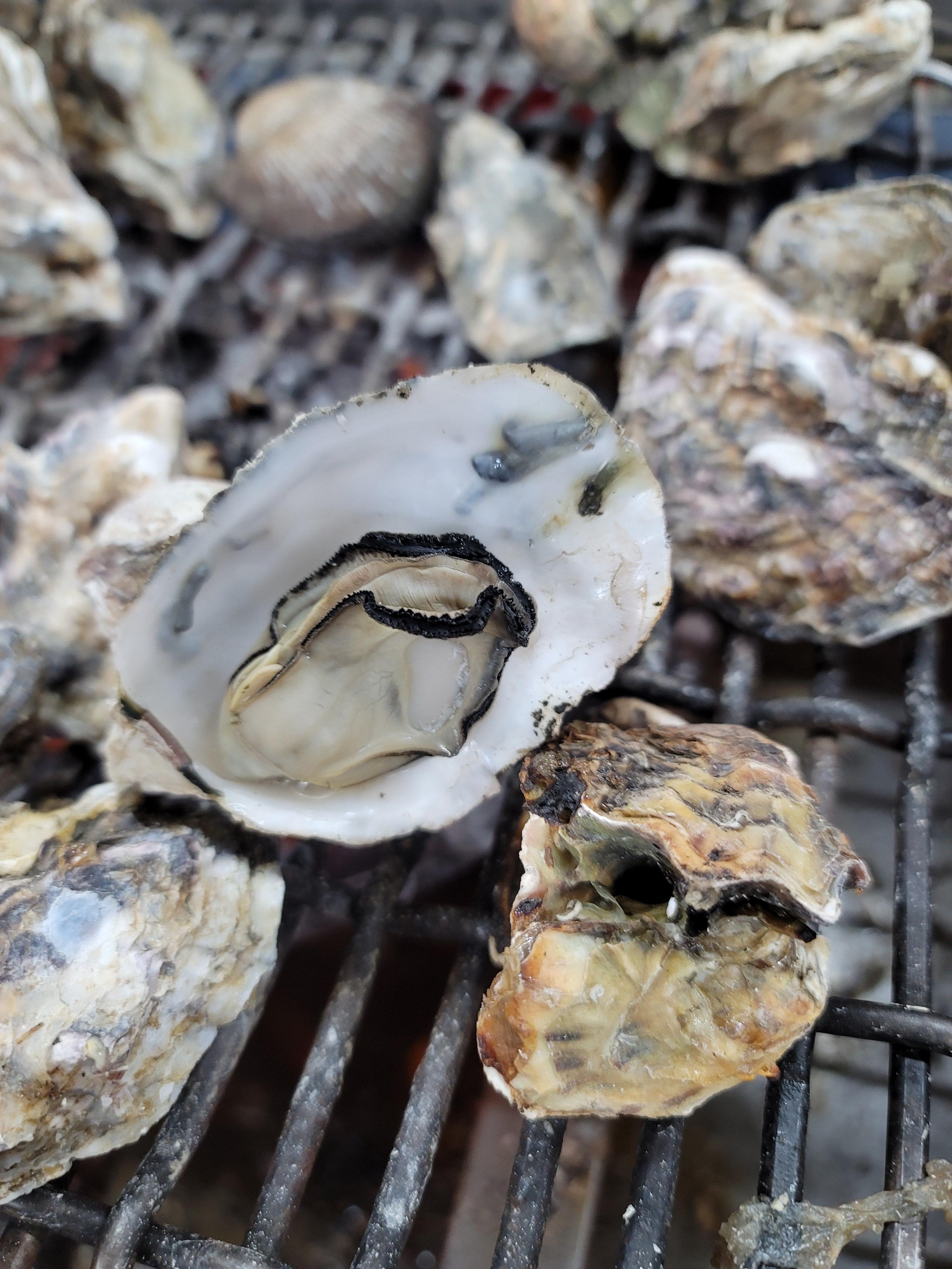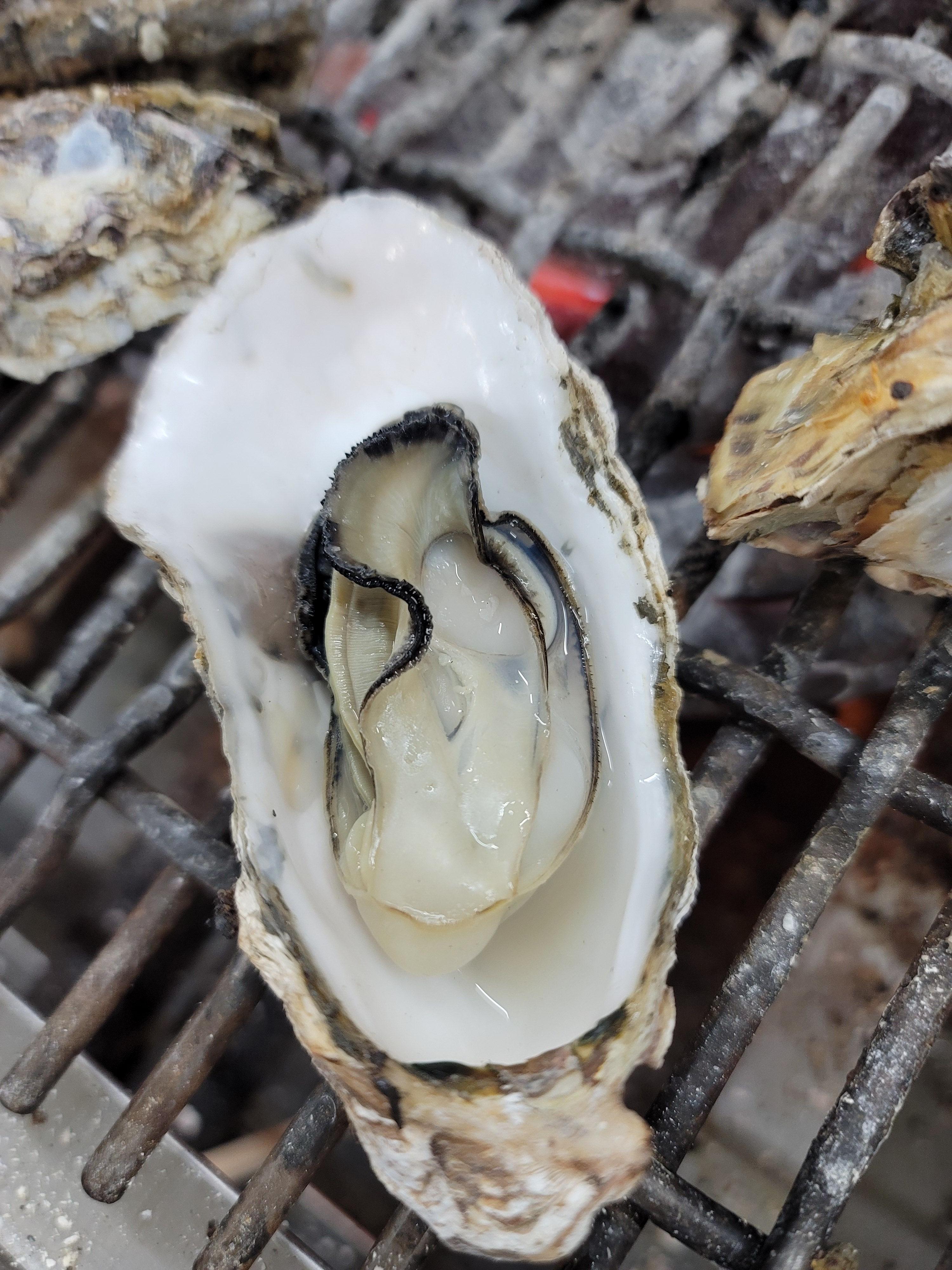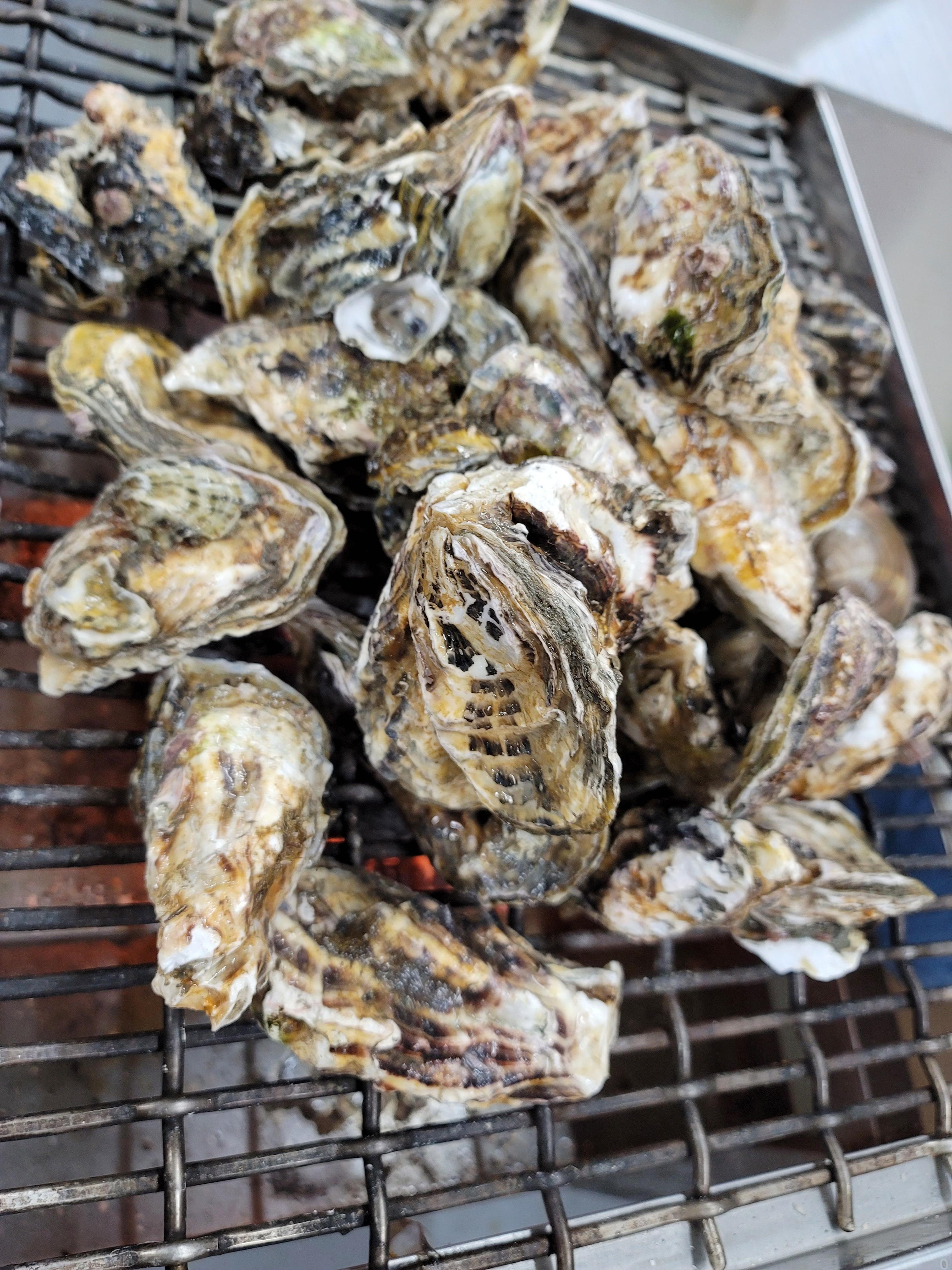 서서히 노릇하게 익어가는 굴 모습이 보이시나요?