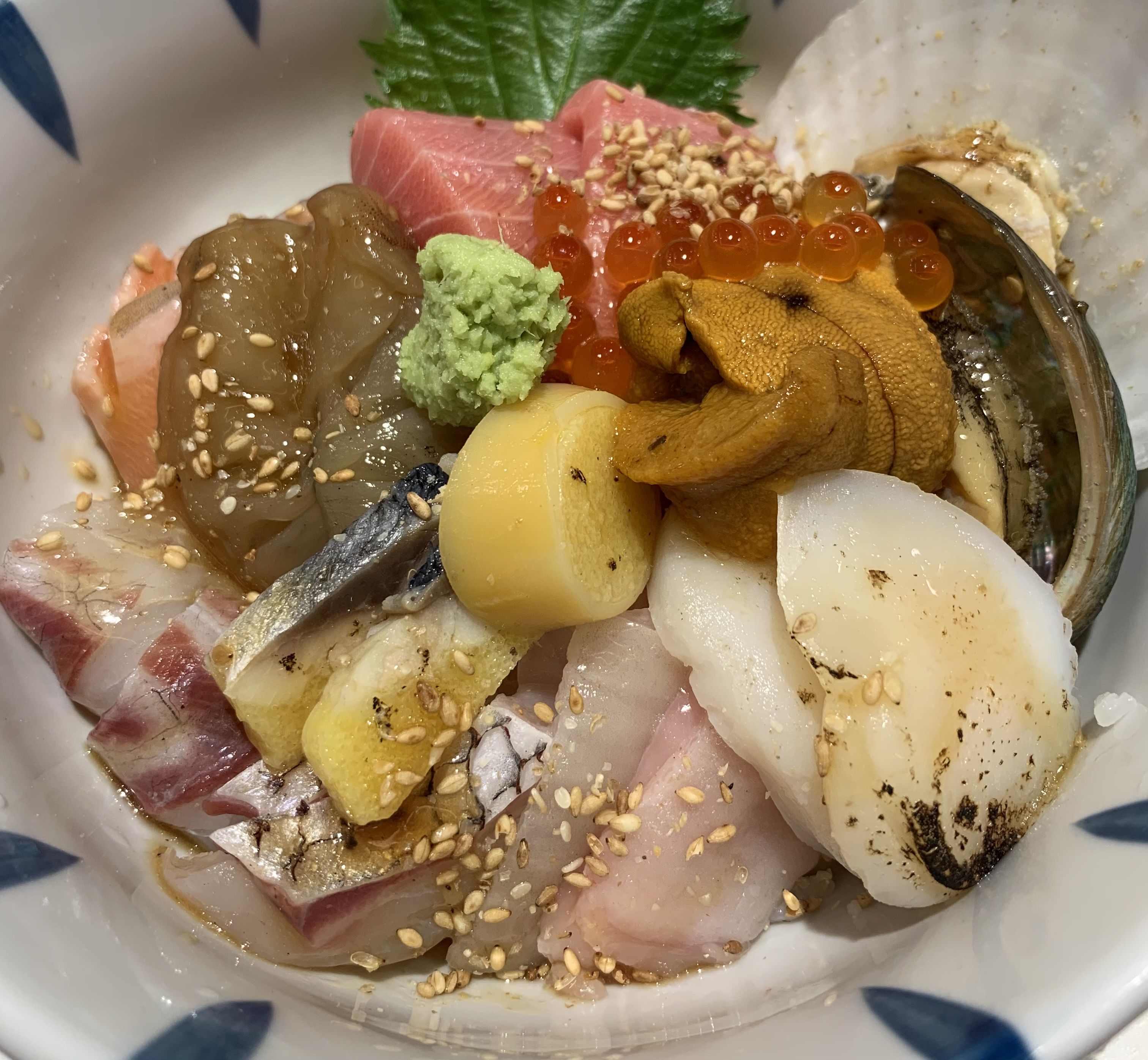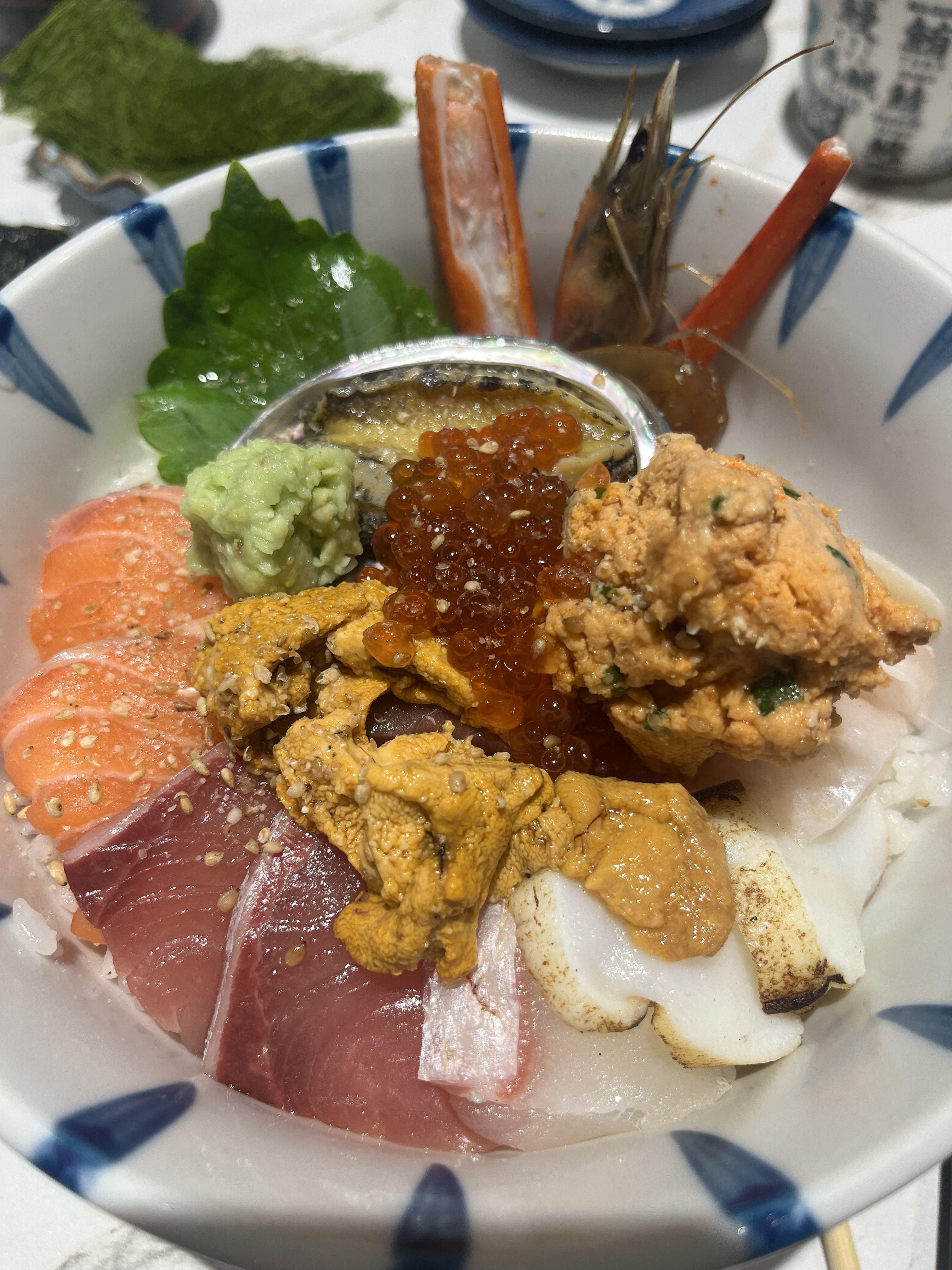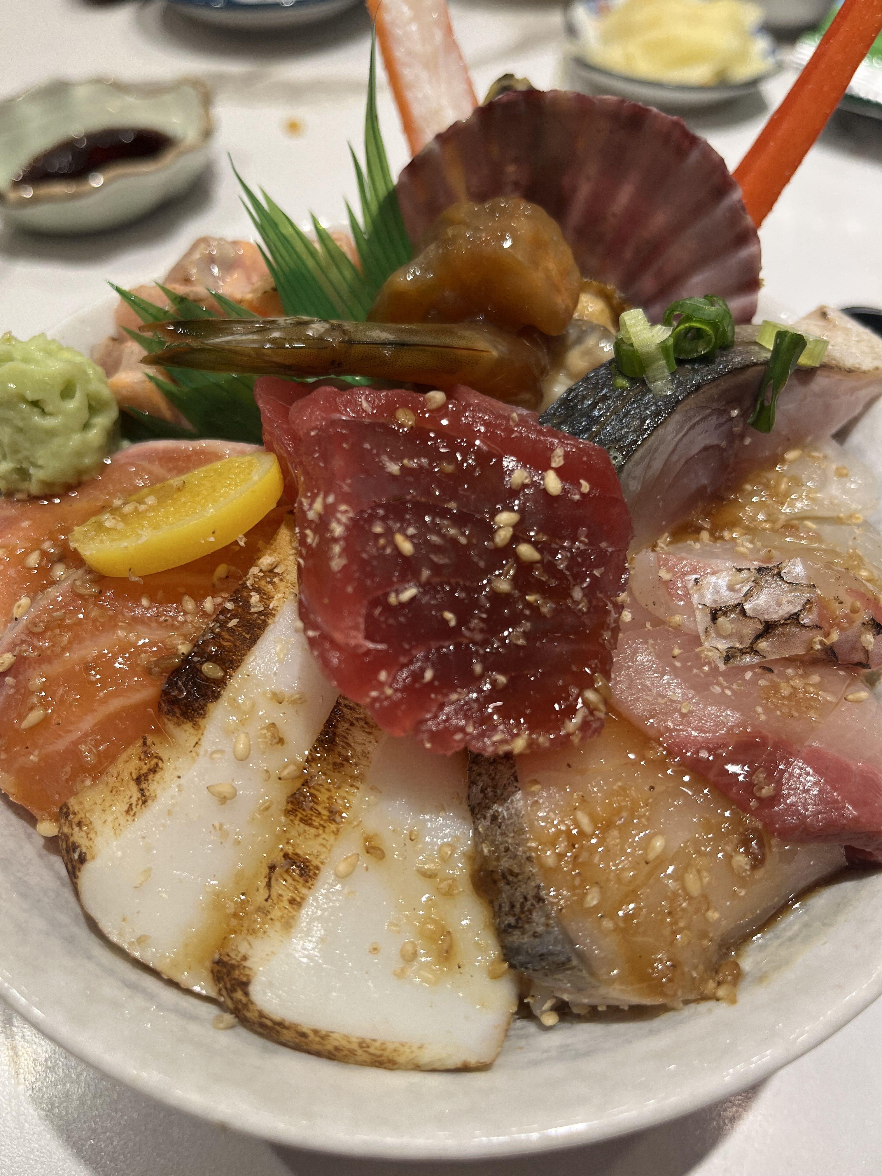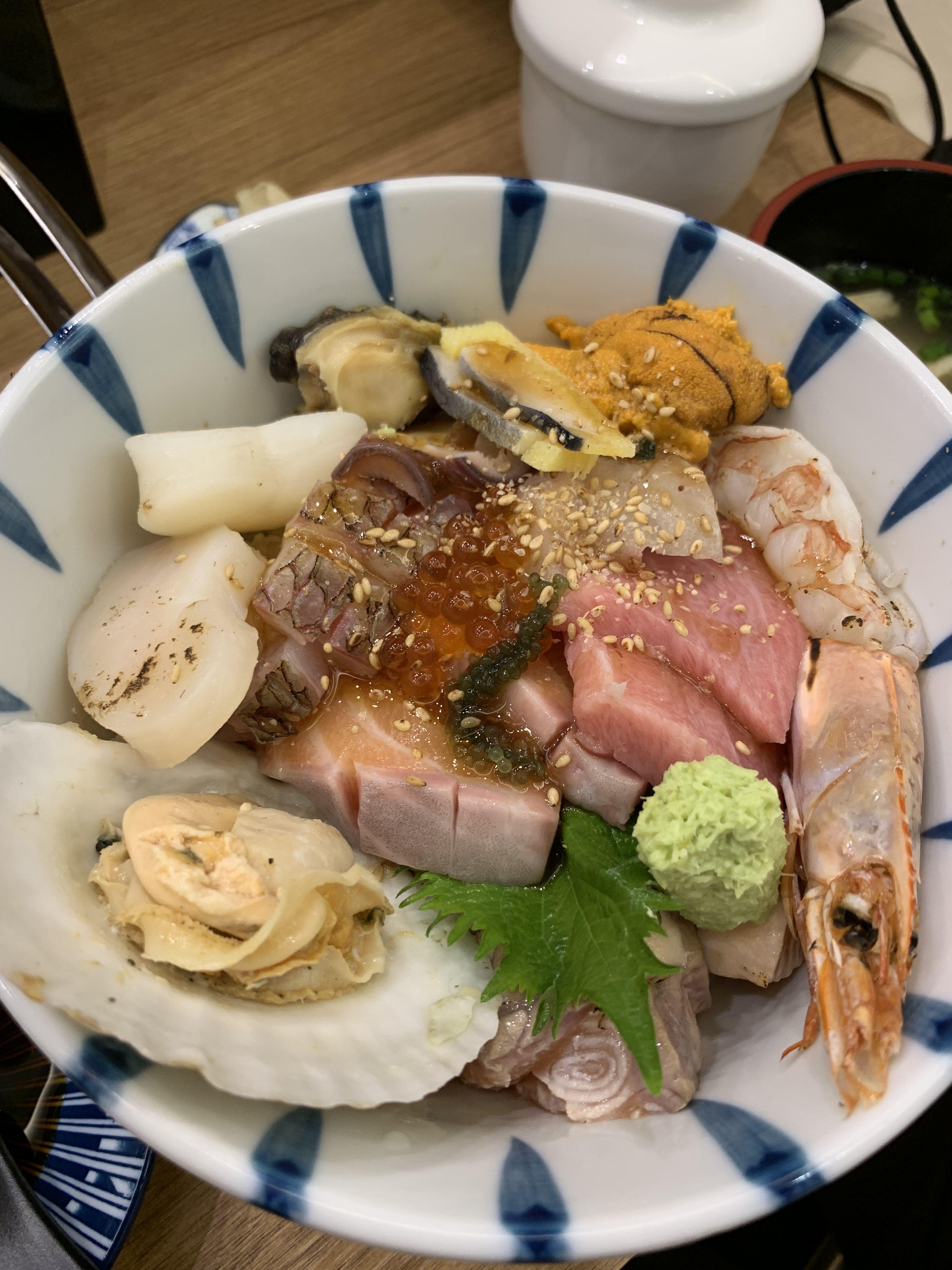 카이센동은 정말 다양한 해산물과 참치회가 많이 올라가져 있는 덮밥이에요!