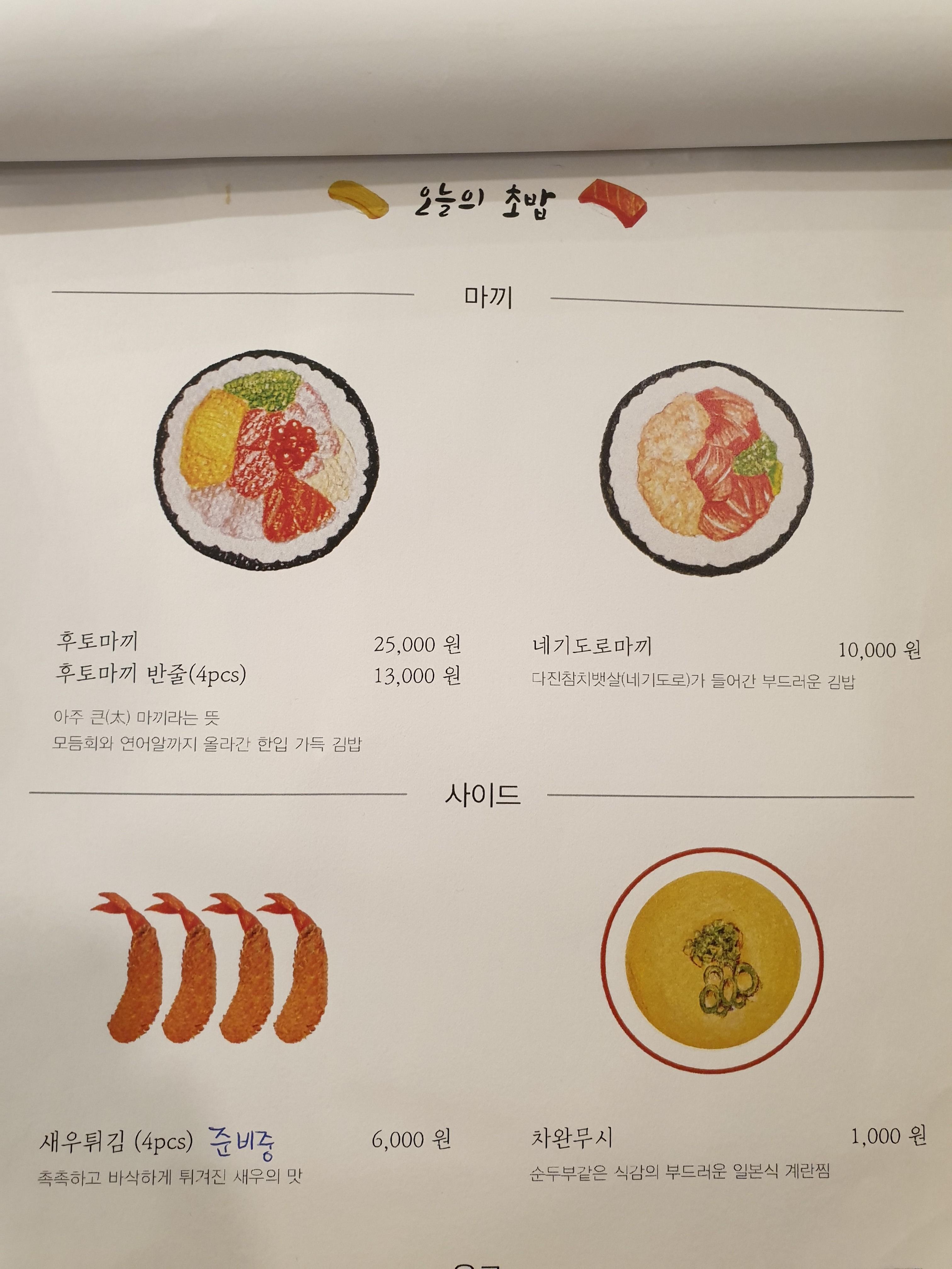 이렇게 몇 년간 오늘의 초밥에서 정말 다양한 메뉴를 먹어보았는데요,