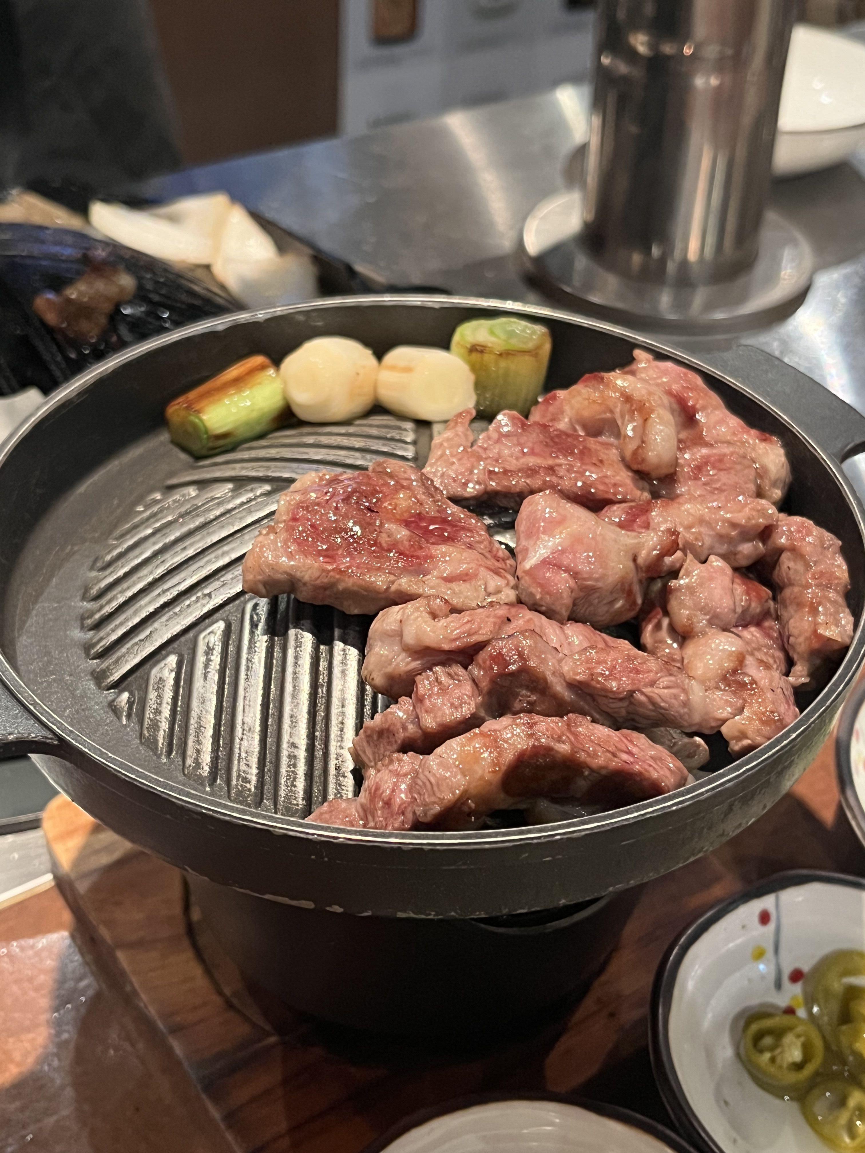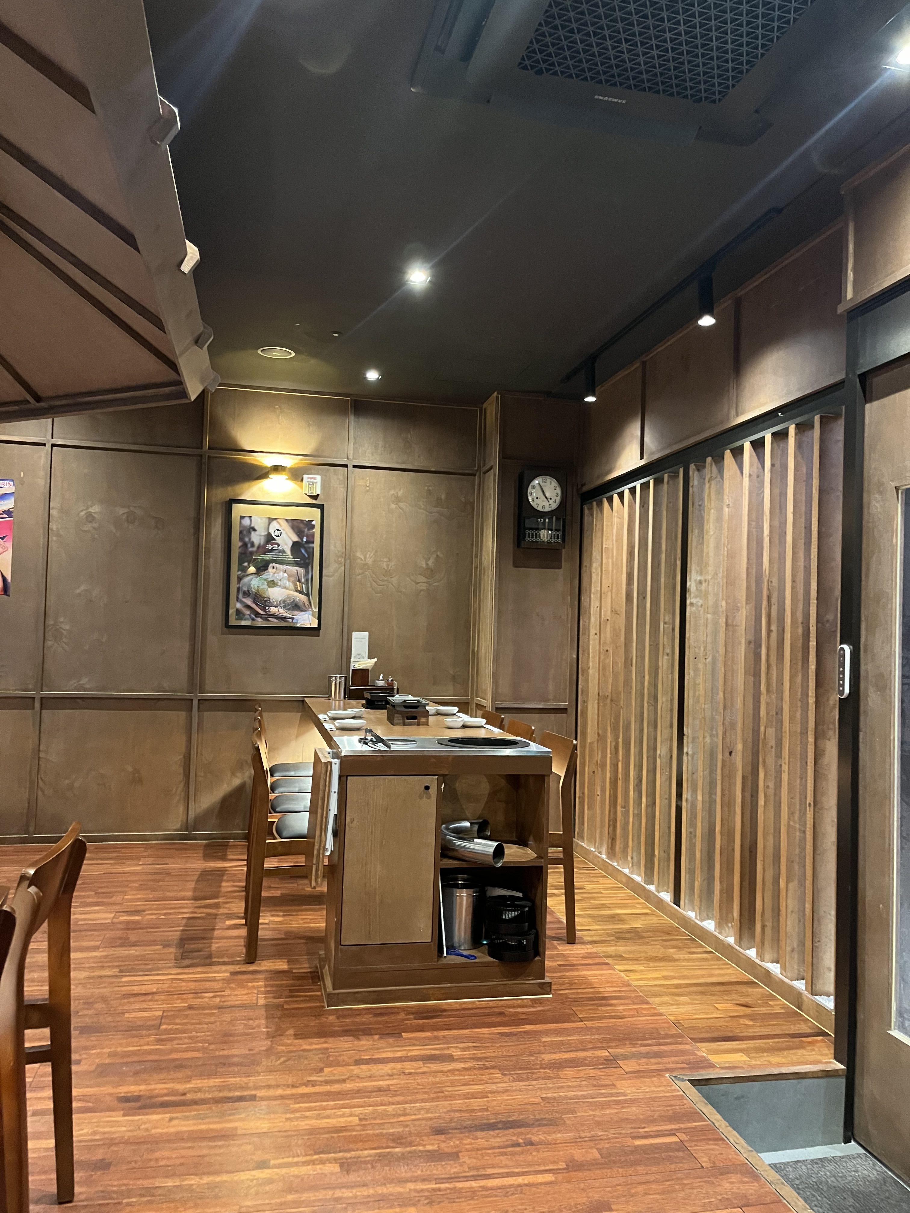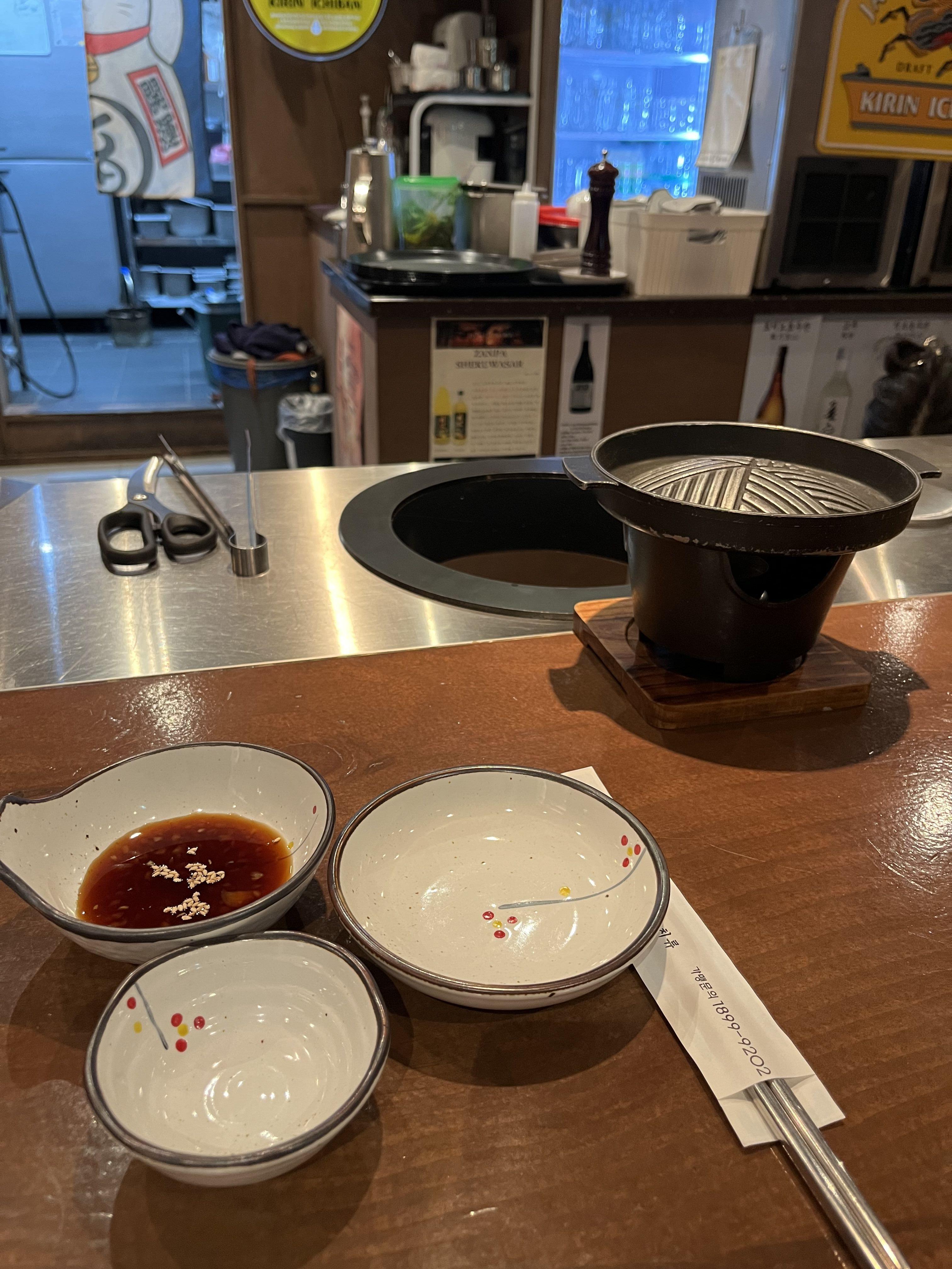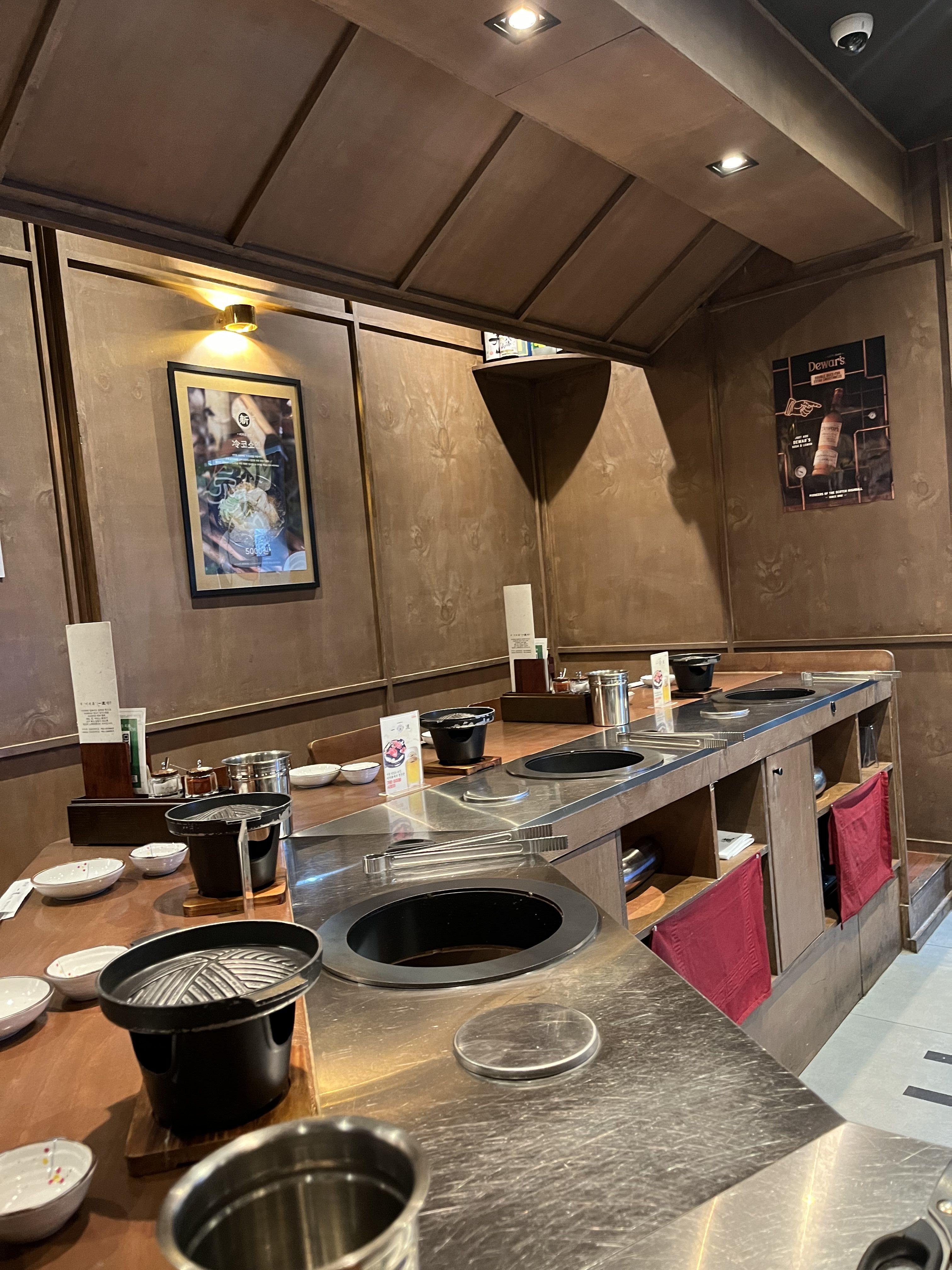 이렇게 직원분이 앞에서 바로 구워주는 1자형 바 형태의 테이블도 있고,