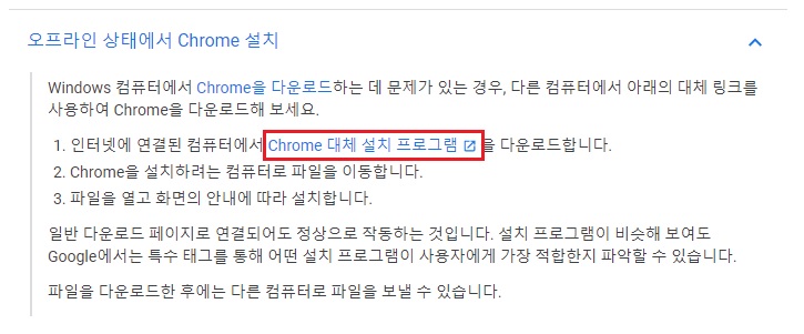 구글 크롬을 오프라인에서 다운로드하는 방법입니다.