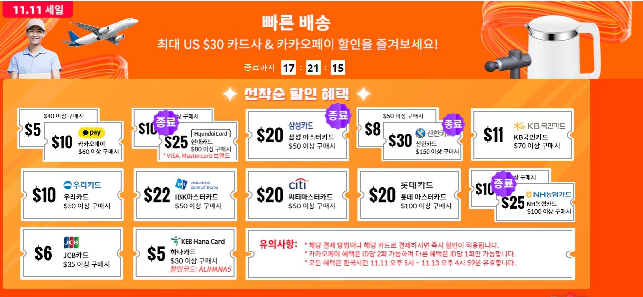 어느덧 11월의 큰 행사 중 하나인 알리 익스프레스 광군제가 돌아왔습니다 !