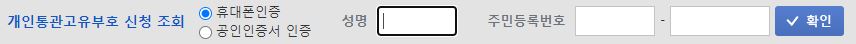 2. 페이지 하단의 개인통관고유번호 신청 조회란에 해당 사항을 입력합니다.