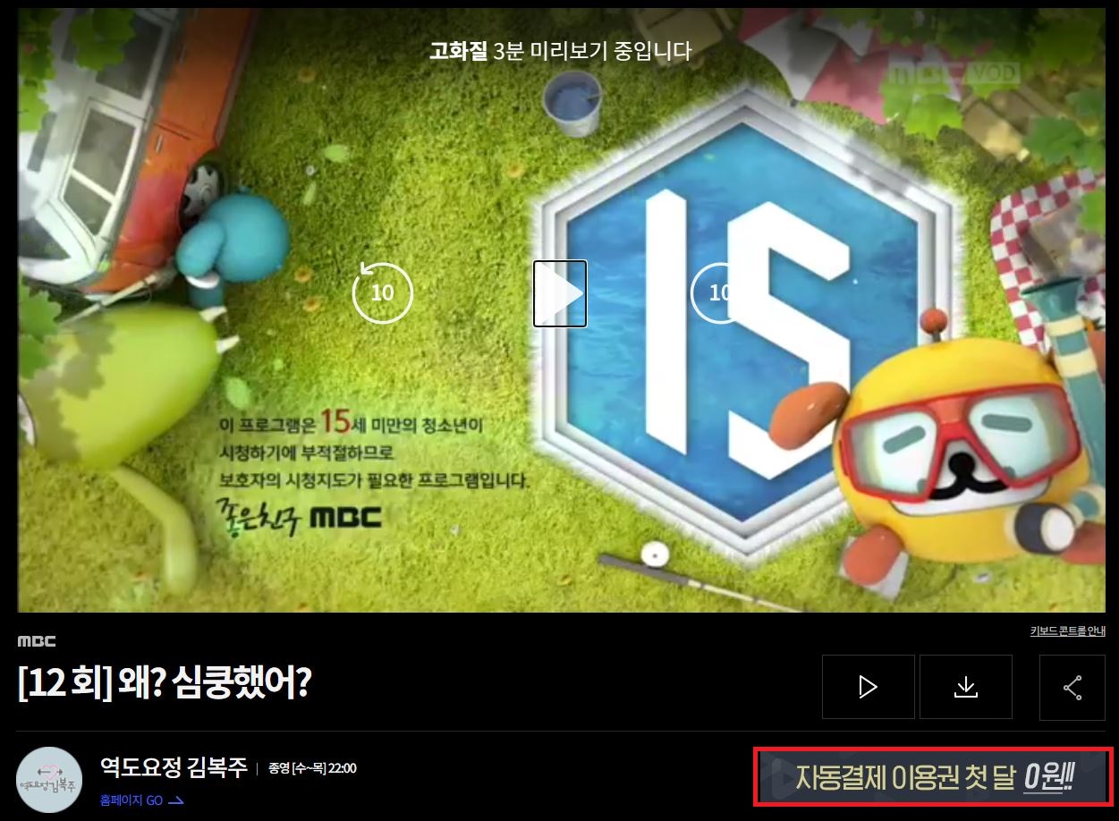 어쨌든 결제를 안하게 되면 3분 미리보기밖에 보실 수 없습니다.