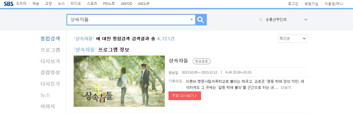저는 '상속자들'을 검색해봤습니다.
