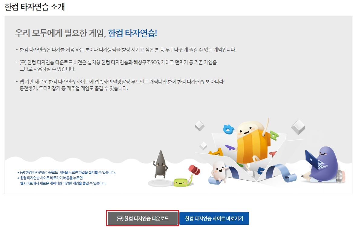3. (구) 한컴 타자연습 다운로드 버튼을 클릭합니다.