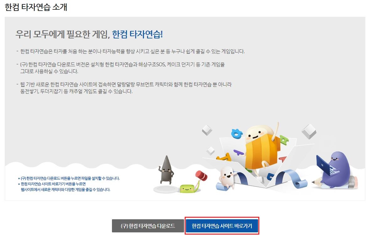 2. 다운로드 버튼이 아닌 한컴 타자연습 사이트 바로가기를 클릭합니다.
