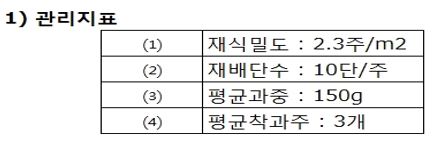 재배 관리지표는 아래와 같습니다~
