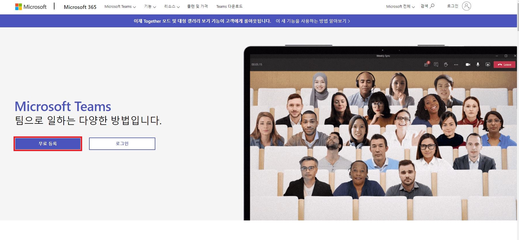 1. 팀즈 설치를 위해 마이크로소프트 팀즈 홈페이지에 접속합니다.