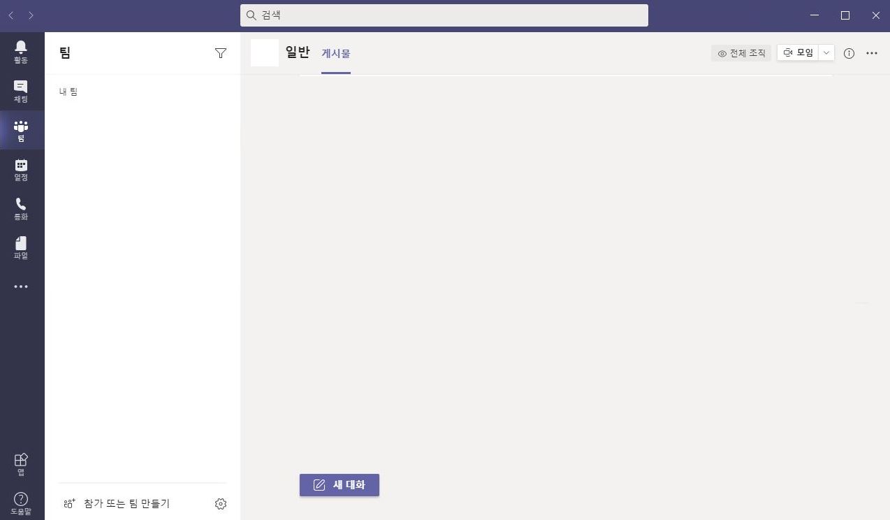 5. 로그인이 완료되면 팀즈 메인화면이 활성화됩니다.