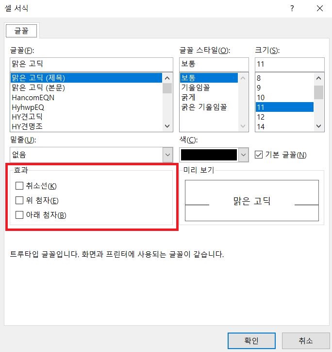 2. 【위 첨자 및 아래 첨자】 선택