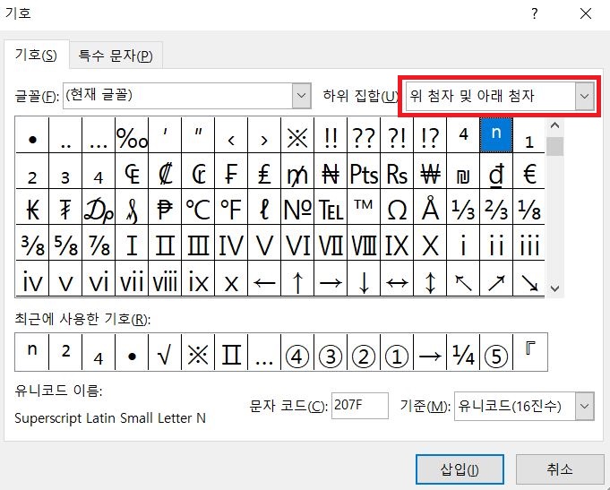 위 첨자/아래 첨자 넣는 방법에 대해