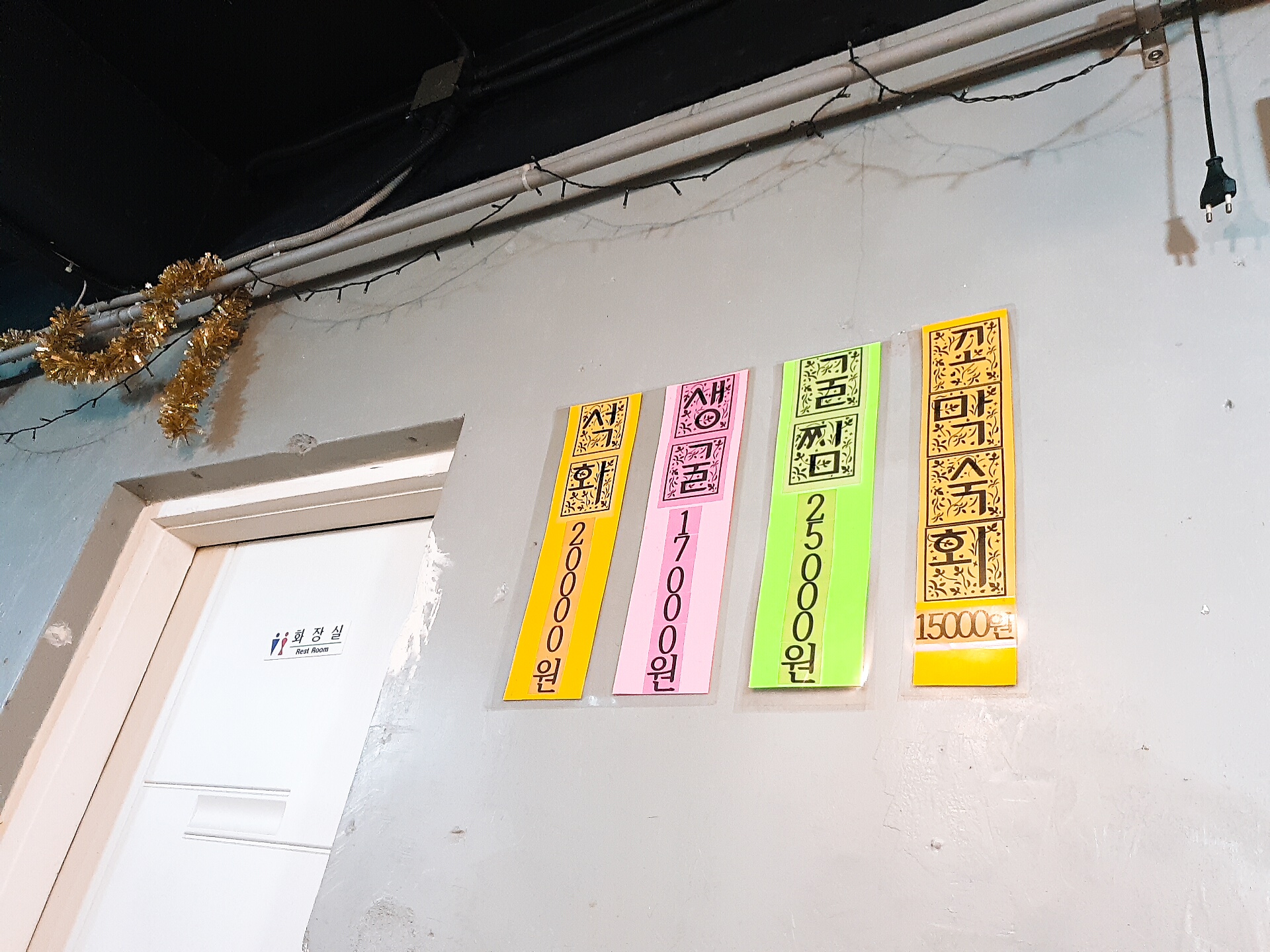 석화, 생굴, 굴찜, 꼬막 숙회, 해물 라면도 있습니다.