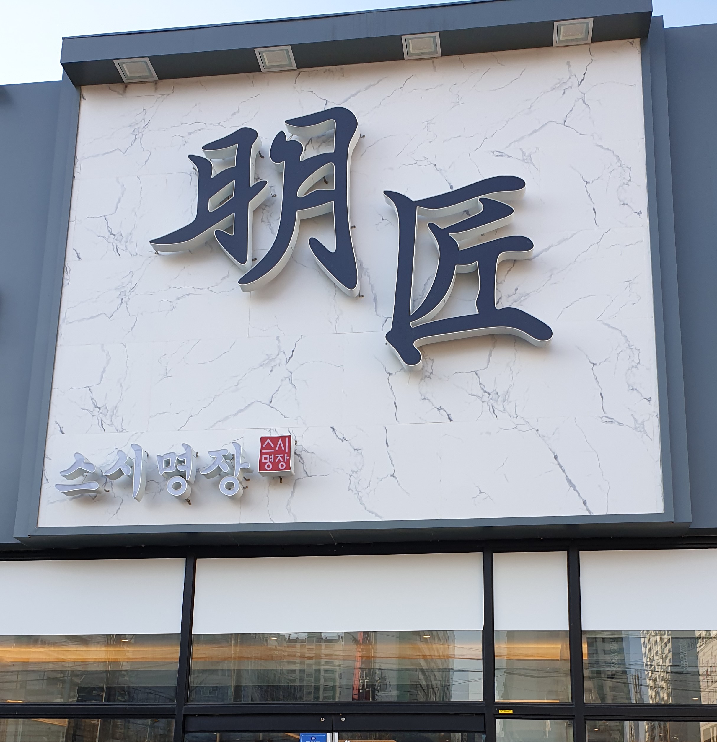 스시명장 간판은 고급스러워 보였고