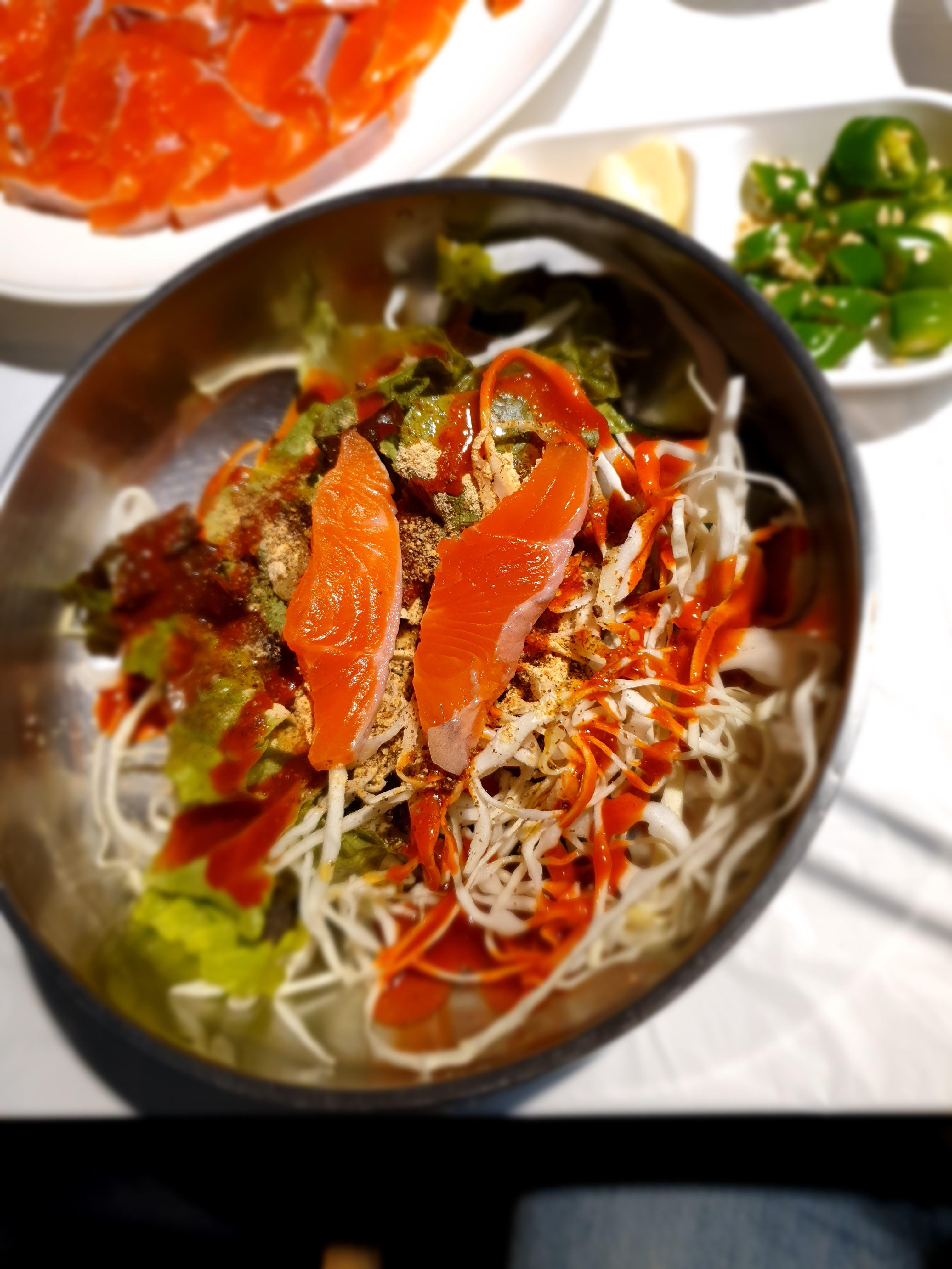 이렇게 다 준비된 야채 위에 송어를 올리고 야채와 함께 먹으면 금상첨화 !!