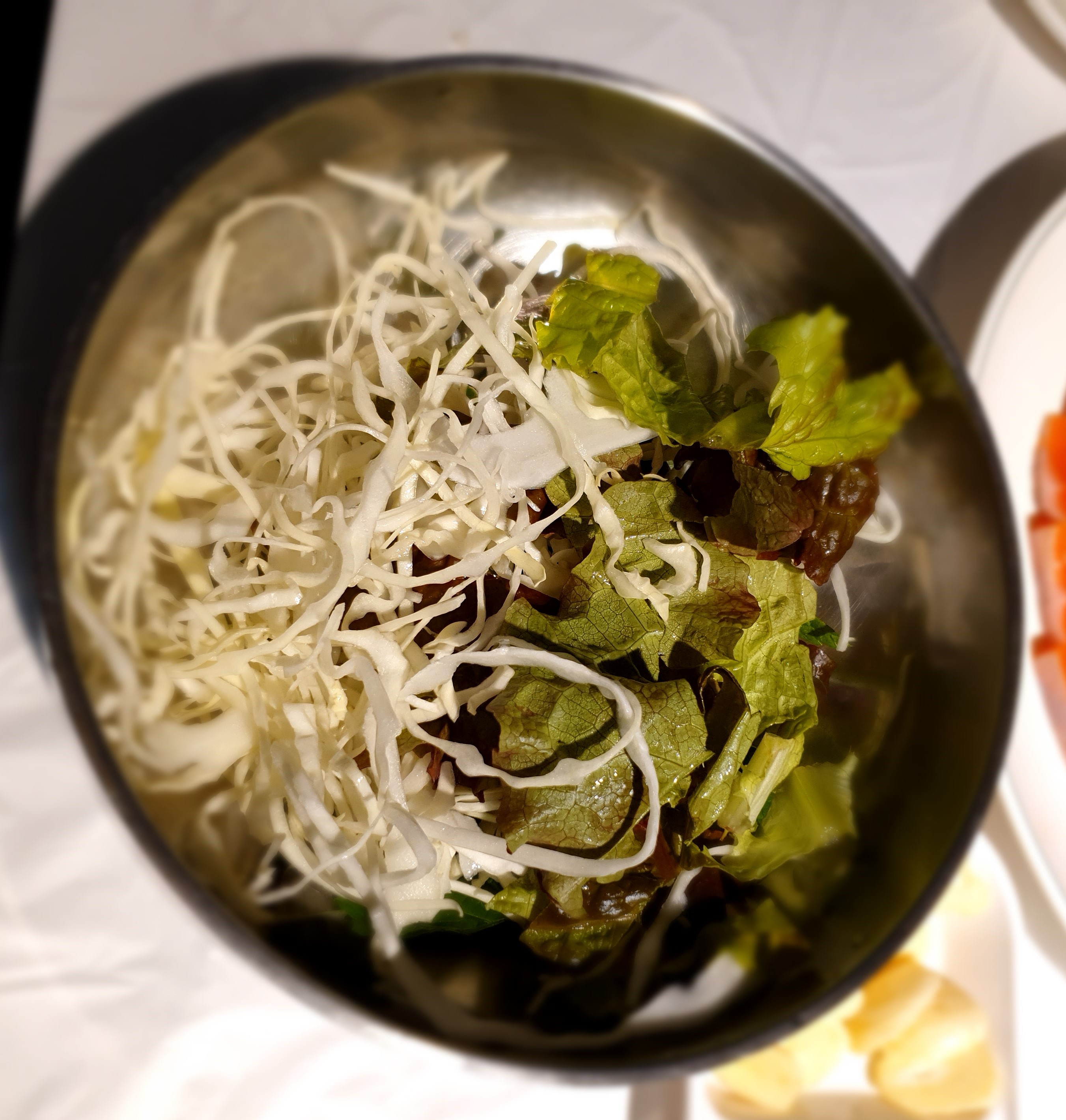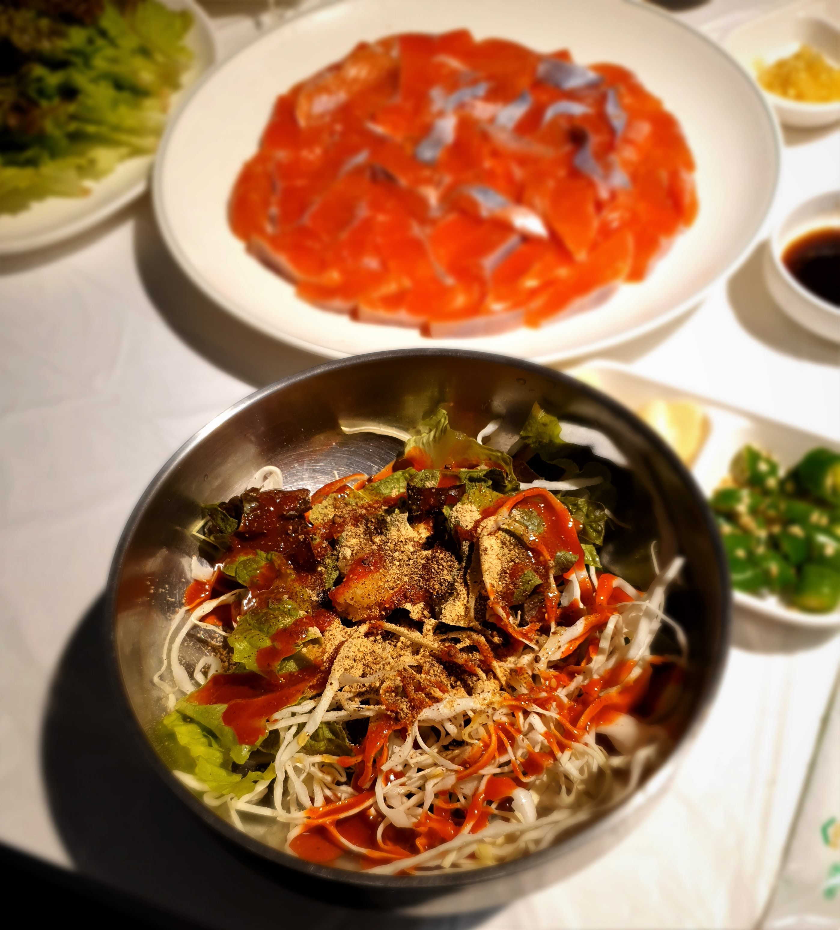 송어회와 야채가 같이 나오는데 지금부터 먹는 방법을 알려드릴게요 !