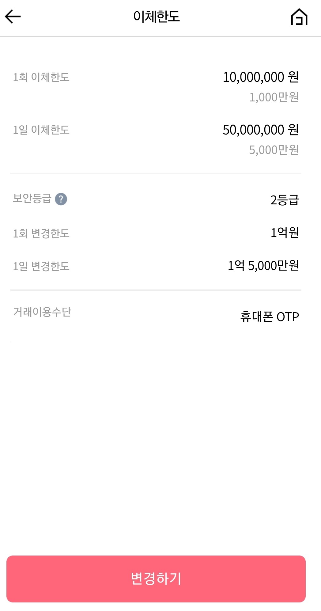 5. 자신의 이체한도 확인!